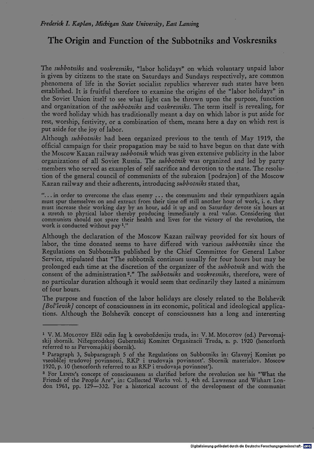 Kaplan, Frederick I.: The Origin and Function of the Subbotniks and Voskresniks